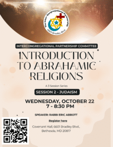 The ICPC invites you to attend a series of talks on the three Abrahamic faiths that share sacred space in 6601 Bradley Blvd in Bethesda. Please RSVP here