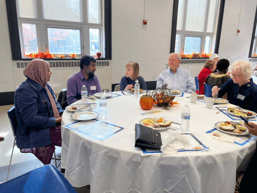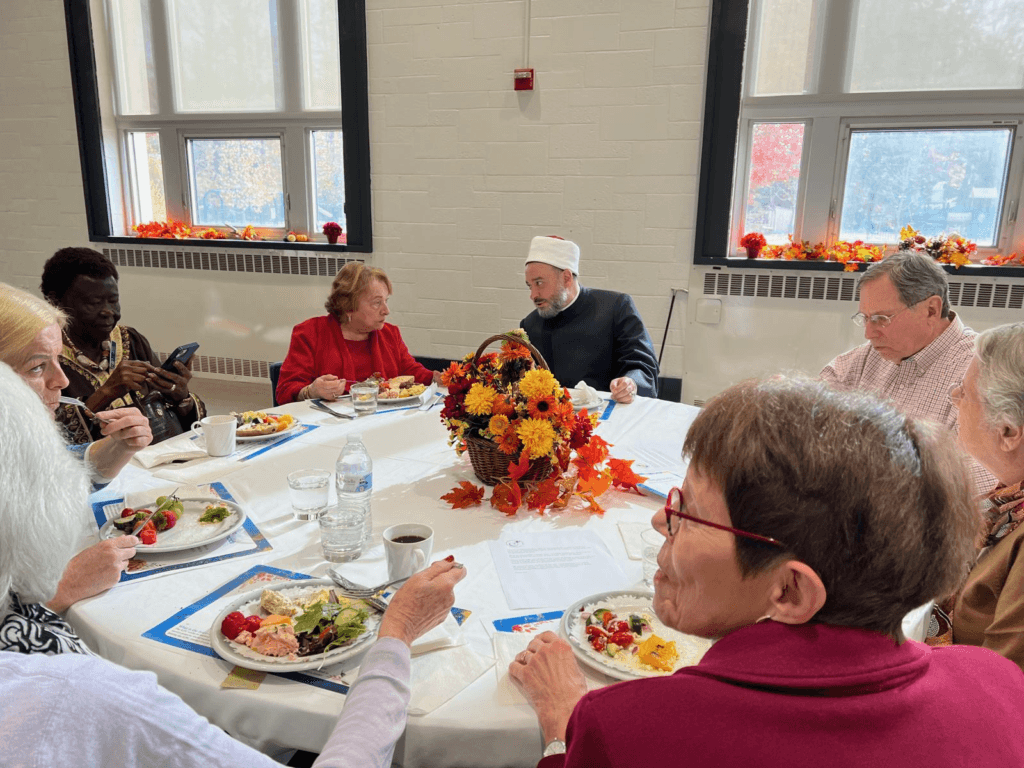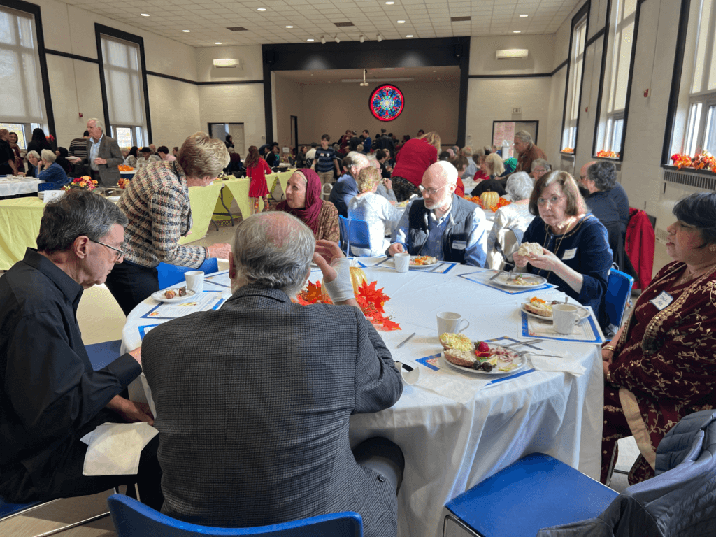 Following the service, attendees gathered for a sumptuous Thanksgiving Brunch. It was heartening to see members of the three faiths engaged in lively conversations at the tables.