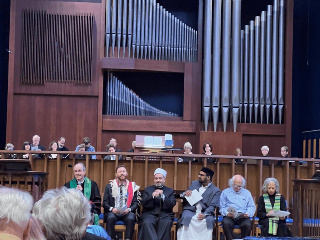 The service included calls to worship and readings from the sacred texts from the three faith traditions. Watch a recording of the Interfaith service here