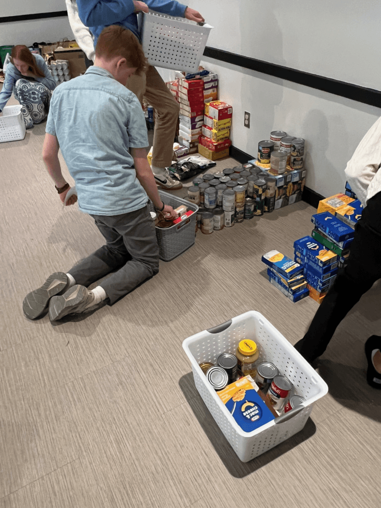 Youth from the three congregations at Maqaame Ibrahim Islamic Center (MIIC), Bradley Hills Presbyterian Church (BHPC) and Bethesda Jewish Congregation (BJC) gathered on November 10 to sort, organize and fill baskets for families in SW DC.